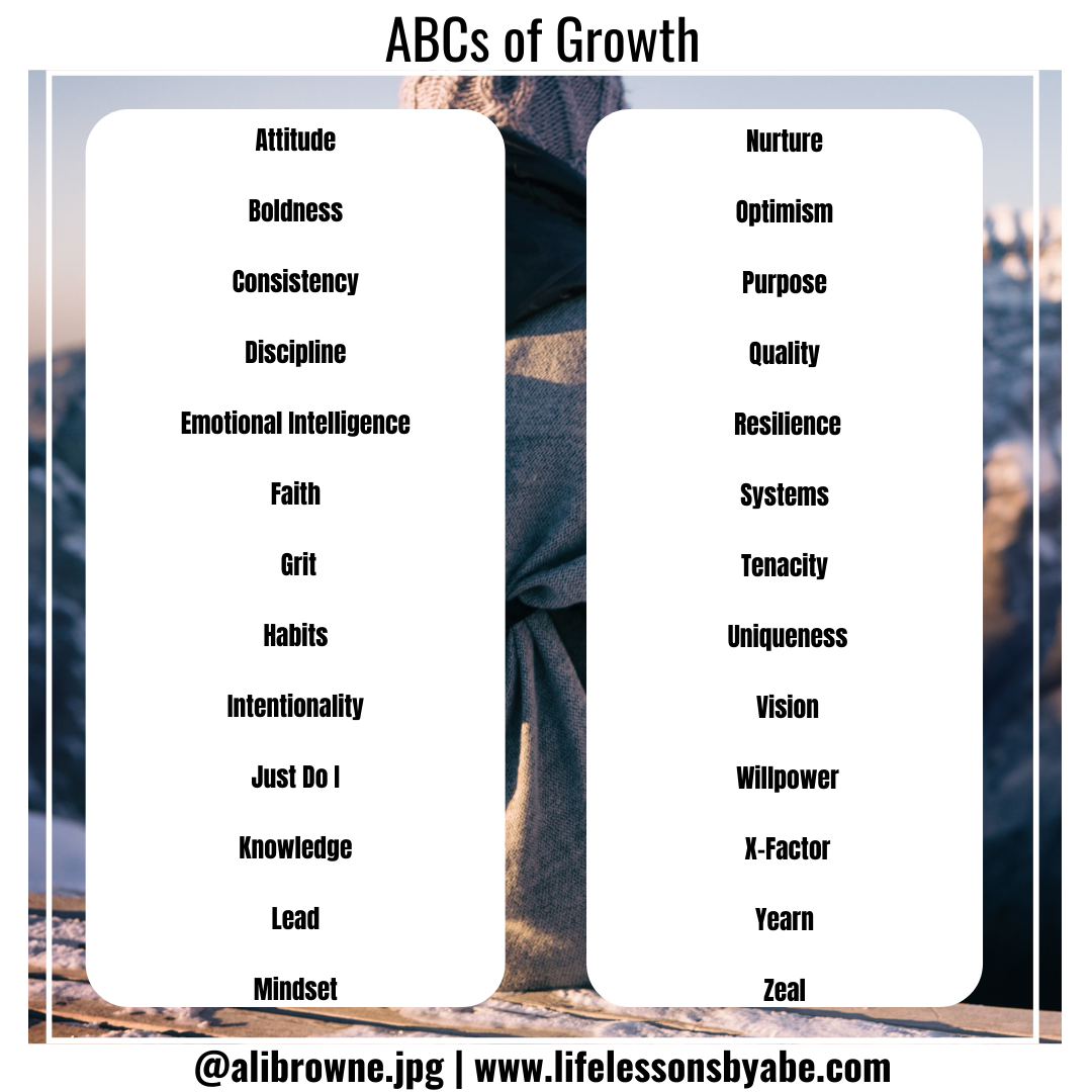 Now the real growth challenge is to ask yourself, am I exhibiting these ABC qualities of Growth? And furthermore, am I exhibiting these qualities consistently? Being authentic in your way of life means that you are constantly developing to increase your level of self-awareness and growth.